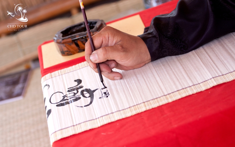 Vietnamese calligraphy, or thư pháp, is a traditional art form that involves writing beautiful characters with a brush and ink. It is often seen during the Tết festival and is considered a way of conveying good luck and prosperity. Many Vietnamese homes display calligraphy artworks as symbols of wealth, health, and happiness.